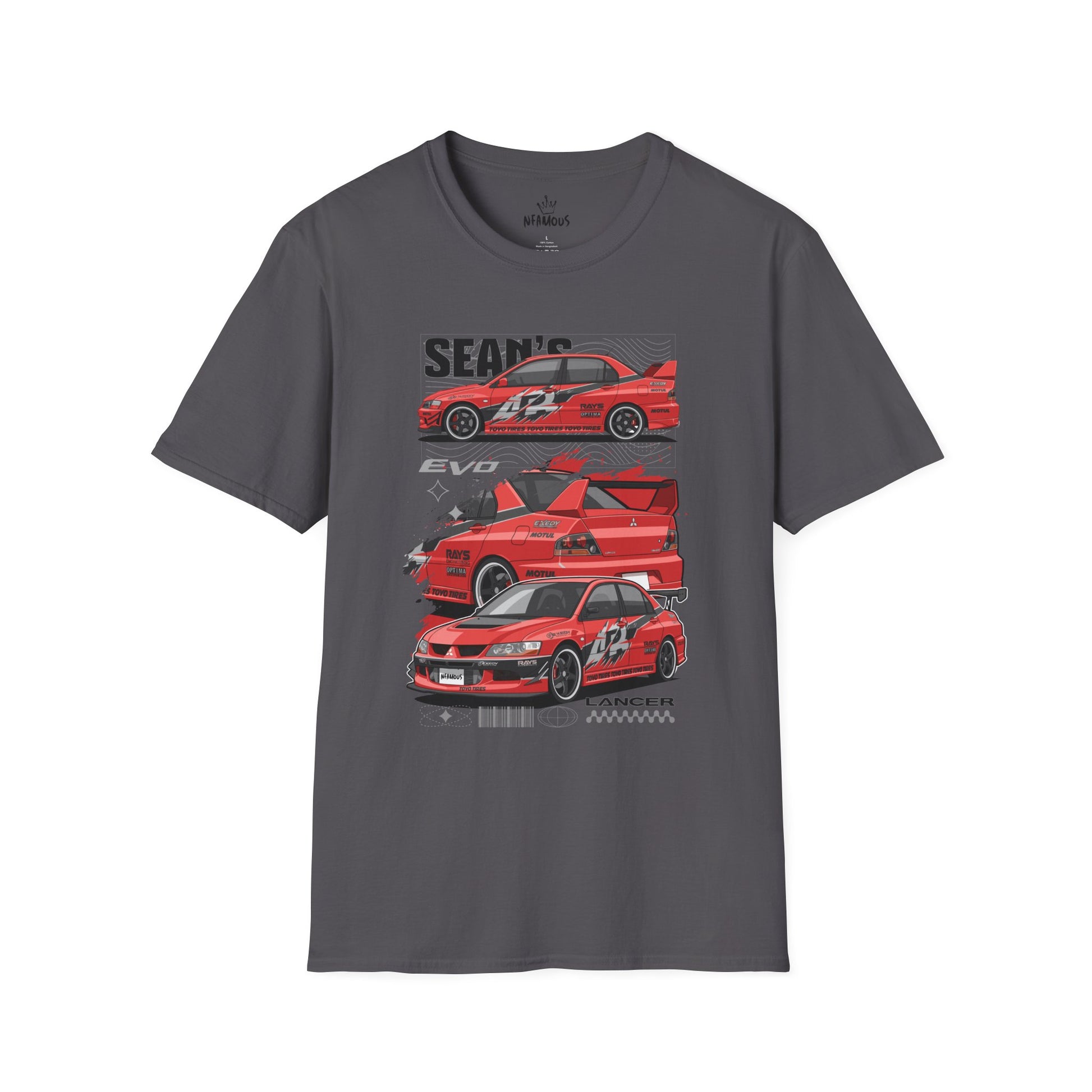 This soft, lightweight tee carries the pulse of track days and late-night wrenching. Three dynamic illustrations of a red Lancer stack across the chest like sequence photographs — from profile to action — capturing speed, stance, and that raw rally attitude. Worn by someone who lives for corner entry and gearbox crackle, the shirt reads like a badge of belonging: crisp prints on a smooth, breathable cotton canvas that layers easily under a jacket or stands alone at meets. The crew neck and clean silhouette keep the focus on the artwork, while the tear-away label and stretch collar keep long drives and long days comfortable. It’s the kind of shirt you reach for heading to the garage, the local track, or a sunset cruise — familiar, durable, and geared toward people who know how a car should sound and feel.